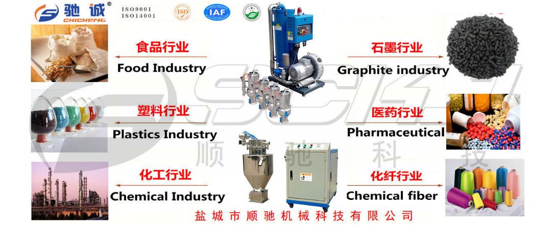 廣泛適用于食品、化工、制藥、塑料、無紡布、化纖、石墨等各行各業的原料輸送。完美地與包裝機、注塑機、粉碎機、混合機等設備的料斗相匹配。