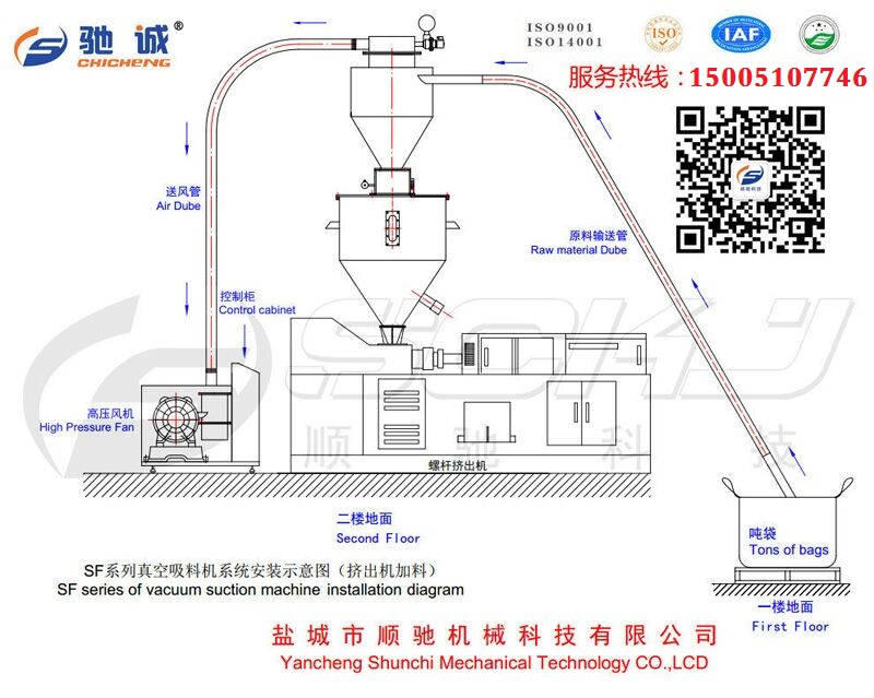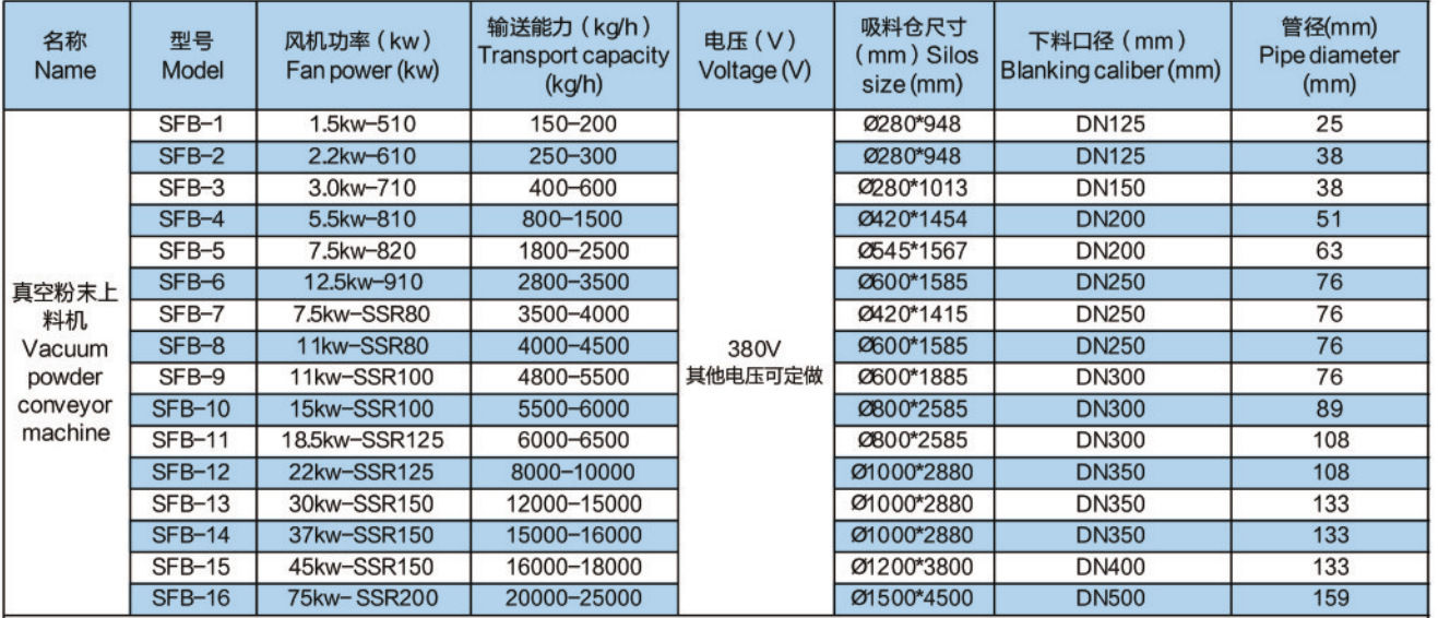 SF系列真空粉末吸料機是現代化工、制藥、食品、冶金、建材、農副等各輕、重工業等必須配套的設備之一,真空粉末吸料機能自動地將各種物料輸送到包裝機、注塑機、粉碎機等設備的料斗中,也能直接把混合的物料輸送到混合機(如V型混合機、二維混合機、三維混合機等)中,減輕了工人勞動強度,解決了加料時粉塵外溢等問題。